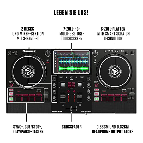 Specification: Numark Mixstream Pro – Standalone DJ Konsole mit 2 Kanälen Engine OS, WIFI-Streaming, 7-Zoll-Touchscreen, integrierten…