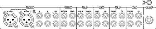 Der Audio-Mischer hat einen XLR-Eingang, der ideal für ein DJ-Mikrofon geeignet ist. Die vier Stereo-Kanäle des DJ Controllers sind umschaltbar zwischen Line/Phono (Kanal 1+2) und Line/Line (Kanal 3+4)