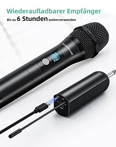 SUDOTACK Drahtloses Mikrofon, UHF Dual Metall Dynamisches Mikrofonsystem mit wiederaufladbarem Empfänger, Mikrofon…