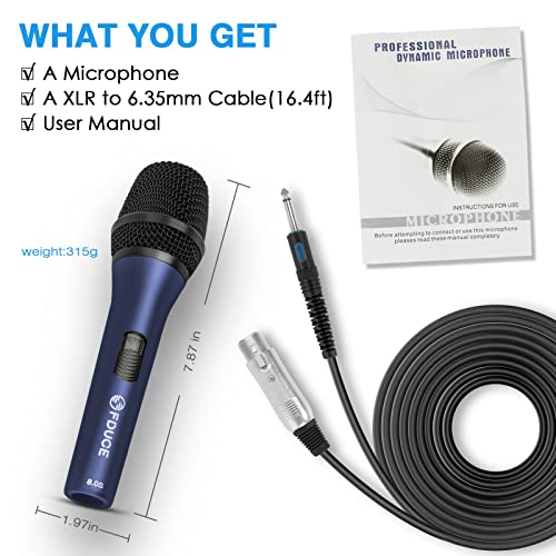 Specification: FDUCE Dynamisches Vokal Mikrofon 8.0s, Metall verdrahtetes Mikrofon mit EIN- und Ausschalter und 16.4ft XLR Kabel…