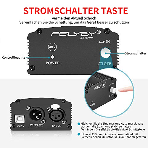 Specification: FELYBY Professionelles Kondensator Mikrofon, Nieren Aufzeichnung Mikrofon Kit Mit Einstellbarem Scherenausleger Arm…