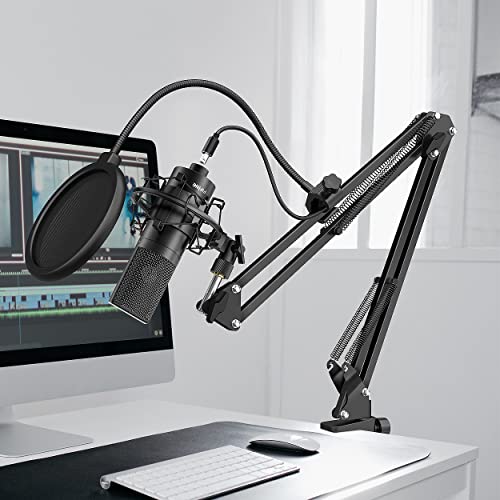 【Langlebige Leistung】 Das Studio USB-Mikrofon-Kit verfügtüber eine robuste Metallkonstruktion für Langlebigkeit. Verfügtüber einen robusten Mikrofonständer, der aus einem stabilen Auslegerarm und einer Metall-Desktop-Halterung besteht. Er kann fest an jedem Tisch mit einer Dicke von bis zu 2 Zoll befestigt werden. Dieser verstellbare Auslegerarm ist stark genug, um das Mikrofon sowohl für den Studio- als auch für den Heimgebrauch zu halten.