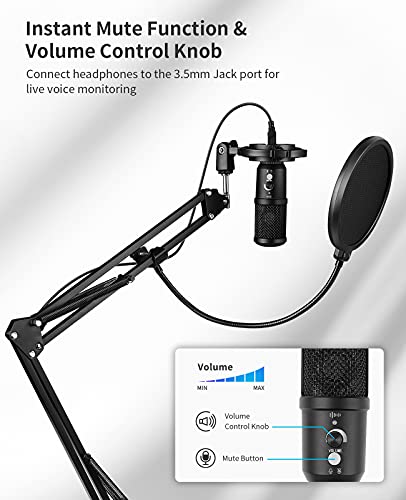 🎤【Überwachen Sie Ihre Stimme】 Am Gaming Mikrofon befindet sich ein 3,5-mm-Audioanschluss.Sie können Ihre Kopfhörer anschließen und Ihre Aufnahmestimme in Echtzeit überwachen und die erforderlichen Lautstärkepegel einstellen.Es ist perfekt für Podcasting,Musik-/Videoaufnahmen, Live-Streaming,Spiele oder Online-Chats.