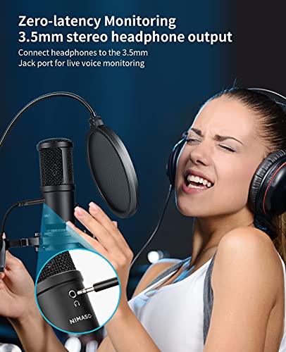 Nimaso USB Mikrofon,192kHZ/24bit Mikrofon pc Podcast Mikrofonset,kondensator mikrofon mit Mikrofonständer,Shock Mount,Windschutz,Popfilter für Rundfunk, Aufnahme,YouTube,Podcast,Gaming
