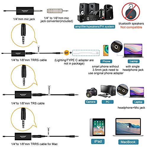 ✏Einfach zu bedienen und Garantie: Plug-and-Play-Mikrofon, schalten Sie den Empfänger und den Sender ein, um eine automatische Verbindung herzustellen. ▶ Die Mikrofonschnittstelle nimmt eine Mutternstruktur an, um die Verbindung fester zu machen Wenden Sie sich an den XIAOKOA-Kundendienst.
